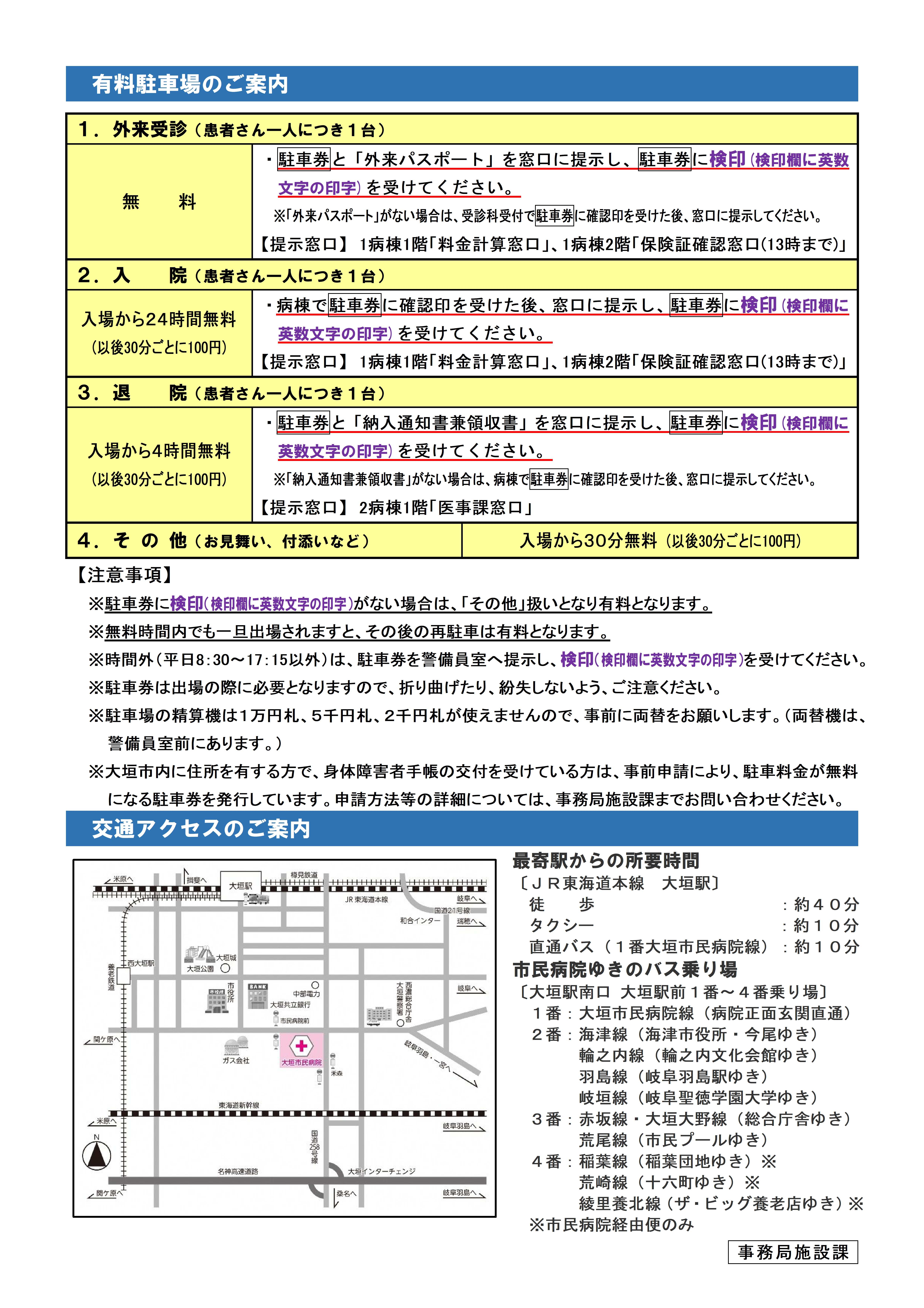 ホーム > 大垣市民病院について > アクセス・駐車場案内