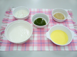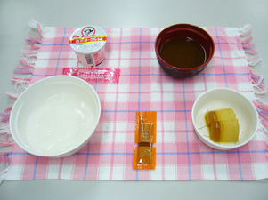 ・全粥ゼリー ・味噌スープゼリー ・おかずゼリー(西京みそ) ・ヨーグルト ・たいみそ |