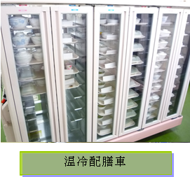 温冷配膳車を利用し、温かい料理は温かく、冷たい料理は冷たく患者さんのお手元に届くようにしています。