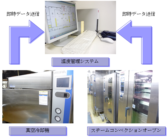 栄養管理科はHACCPに対応したシステムを2004年に導入し、秒単位で室内温度管理、冷蔵・冷凍庫の温度管理、食材の加熱・冷却温度と納品される食材の安全性を管理しています。