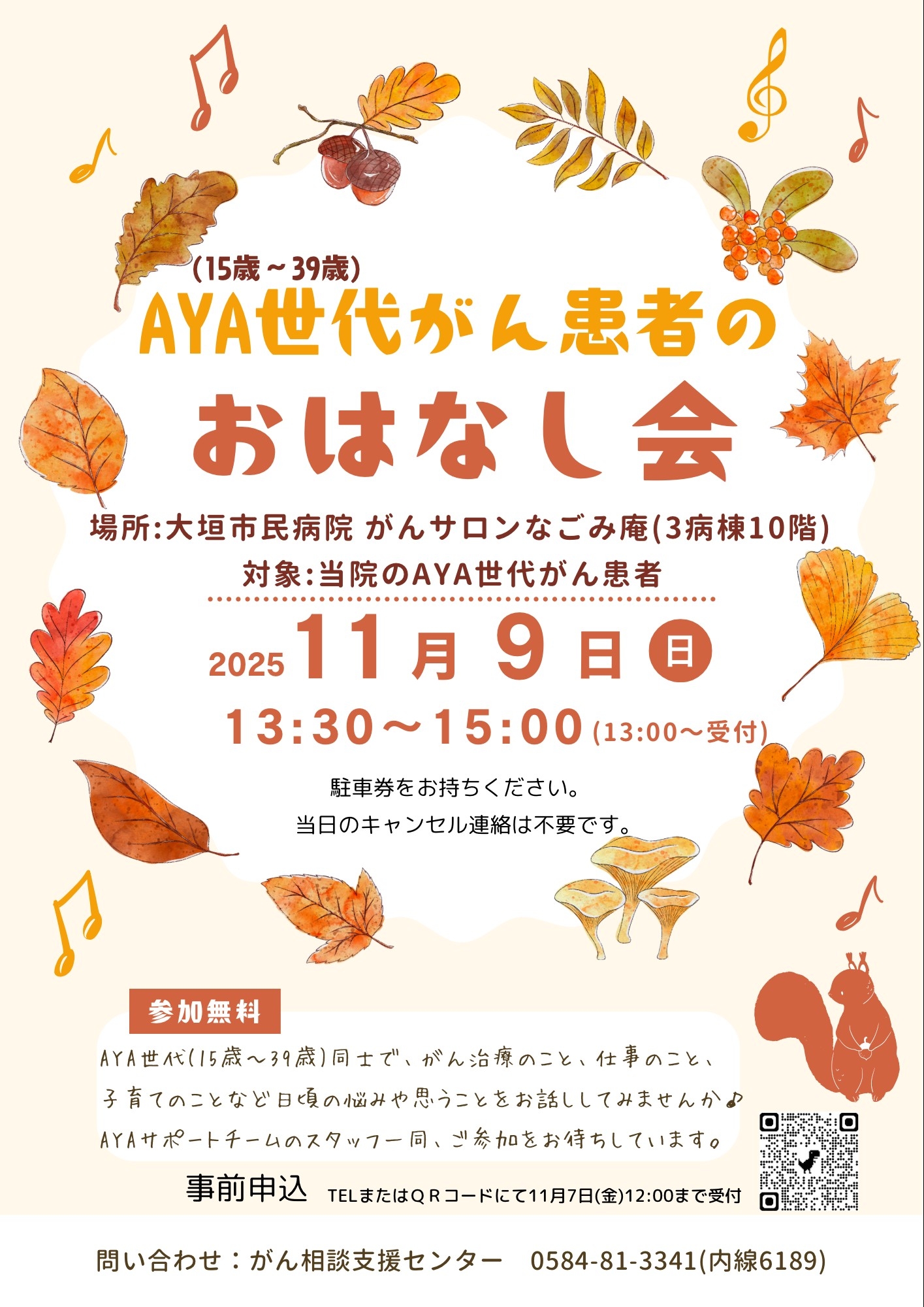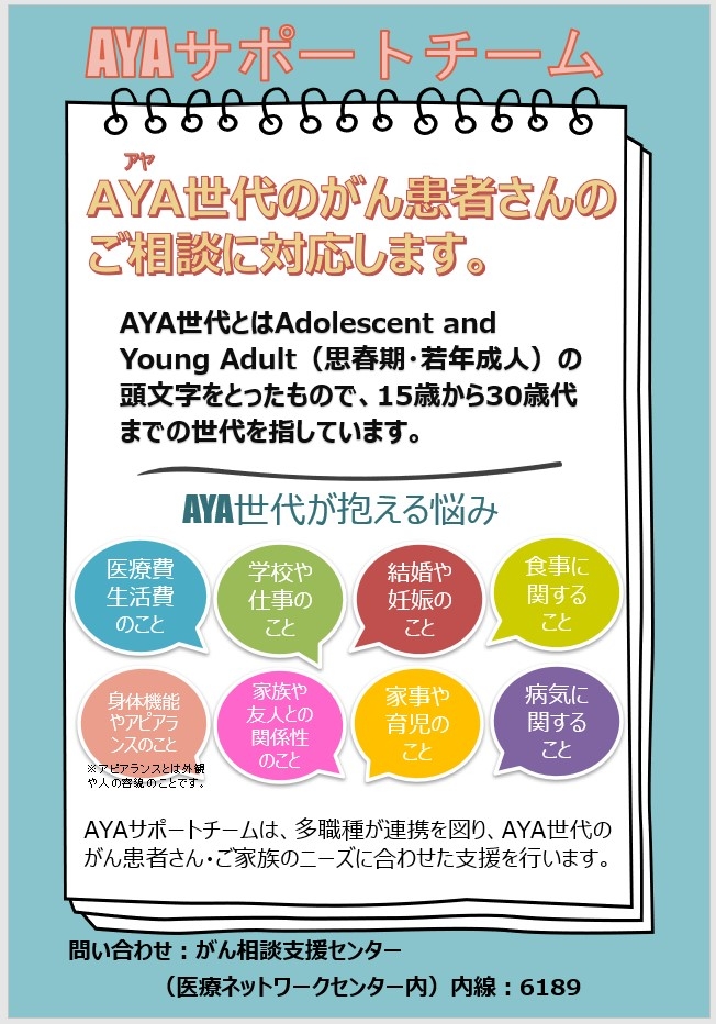 AYA世代とは、Adolescent and Young Adult(思春期・若年成人)の頭文字をとった造語になります。