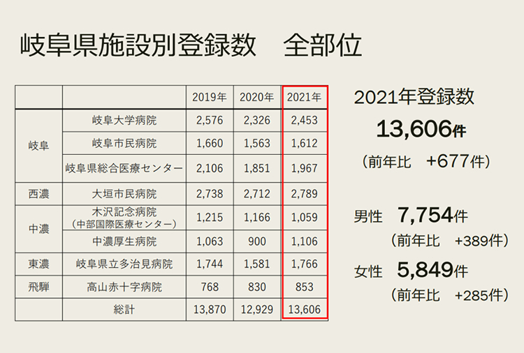 図1 岐阜県内の院内がん登録件数(がん拠点病院)の推移