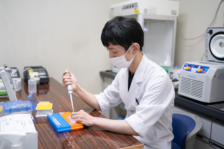 また、次世代のがん個別化治療の1つであるゲノム医療にも力を入れています。当院ではゲノム外来(『がんに関する情報』参照)を毎週開いています。各診療科で抗がん剤治療だけでは不安を感じる患者さんはぜひ各外来で相談してみてはどうでしょうか。ゲノム医療とは、患者さんの遺伝子情報に基づいて最善の治療薬を選択することですが、それらの治療は時に治験(未承認医薬品の承認を得るために行われる臨床試験)である場合もあり、すべての治療が当院で行えるわけではありません。そのため、治療ができる施設へ適切に紹介し、連携しながらその後の治療にあたっています。しかし、治療を受ける場所が遠方であれば、それが患者さんの大きな負担になることもあります。今後は1つでも多くの治療を当院で完結できる体制を整備していくことを目標に、ゲノム医療をますます発展させていきたいと思います。