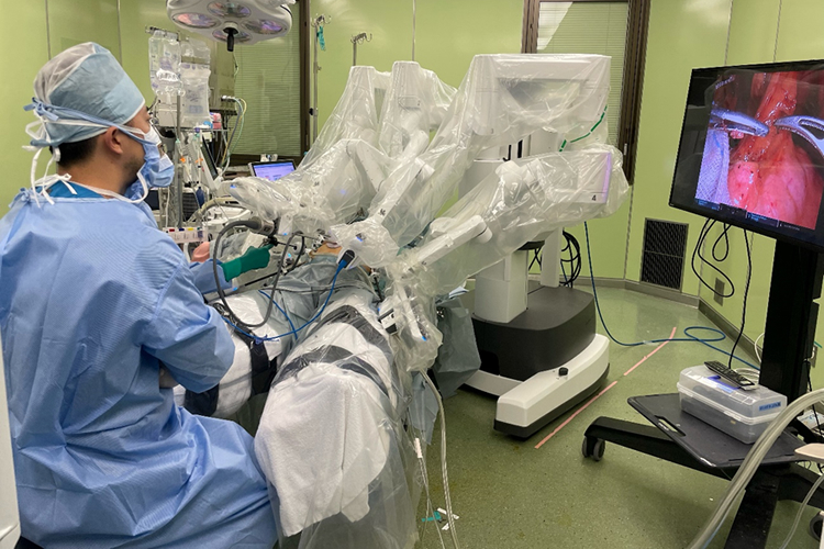 ラパでの十分な経験を踏まえて、現在はダヴィンチを用いたロボット手術も行っています(診療科、外科参照)。基本的にはラパの延長線上にあるロボット手術ですが手術器具が高額であるため適応を決めて行っています。泌尿器科では以前から前立腺がん、腎がんにロボット手術を適応していて今では基本術式となっています(診療科、泌尿器科参照)。今後は産婦人科も参戦予定です。ロボット手術は発展途上にありますがコスト高が難点です。国産メーカーのロボット参入が待たれます。