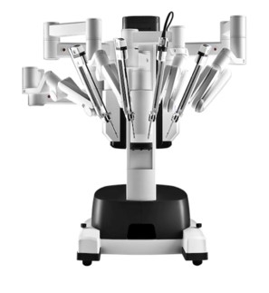 ロボット支援下内視鏡手術はda Vinci Surgical System(ダヴィンチ)を用いて行う低侵襲手術です。従来の内視鏡手術(腹腔鏡・胸腔鏡手術)では人間の手で直線的な機器を操って手術を行なっていましたが、ダビンチの鉗子は、どの方向にも曲げることができるので複雑かつ繊細な動きを要する手術が可能となります。さらに、高倍率3D HD手術画像と手ぶれ補正により、安定した自然な動きで繊細な手術が可能です。(ダヴィンチは必ず執刀医により操作され、ロボットが勝手に動くことはありません。)詳細はロボット支援手術のホームページをご覧ください。 |