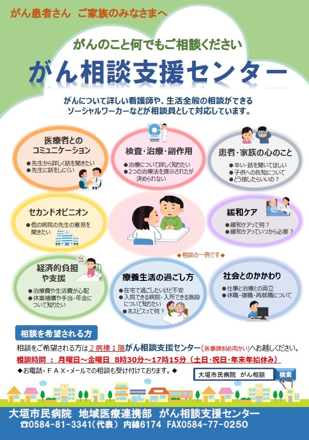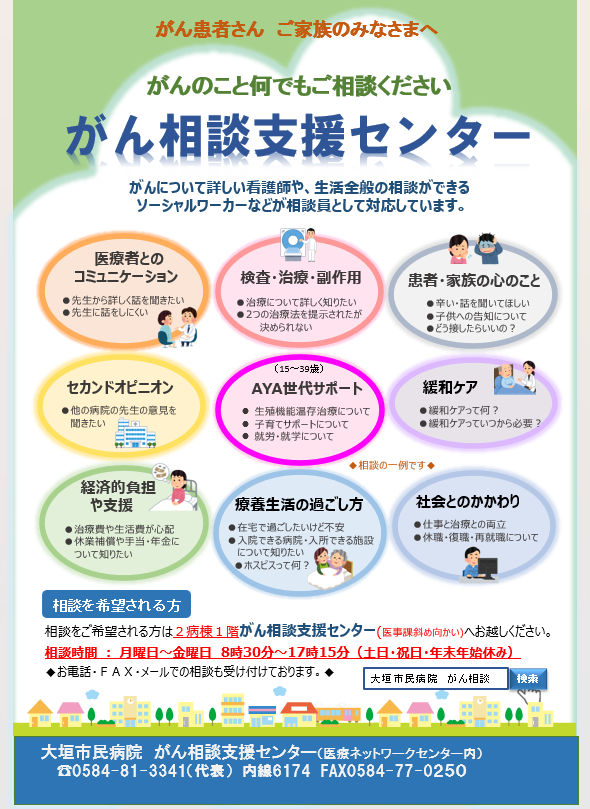 A. 当院では、ハローワーク大垣の就労支援ナビゲーターによる就職支援相談会を開催しております。事前予約制ですので、がん相談支援センターへ連絡してください。