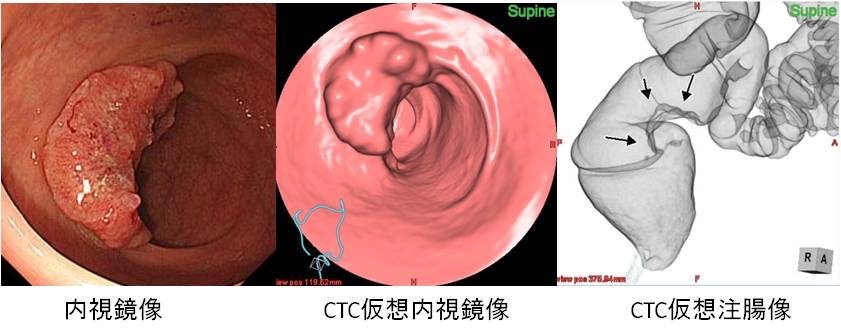 | CTC仮想内視鏡像 | CTC仮想注腸像 |