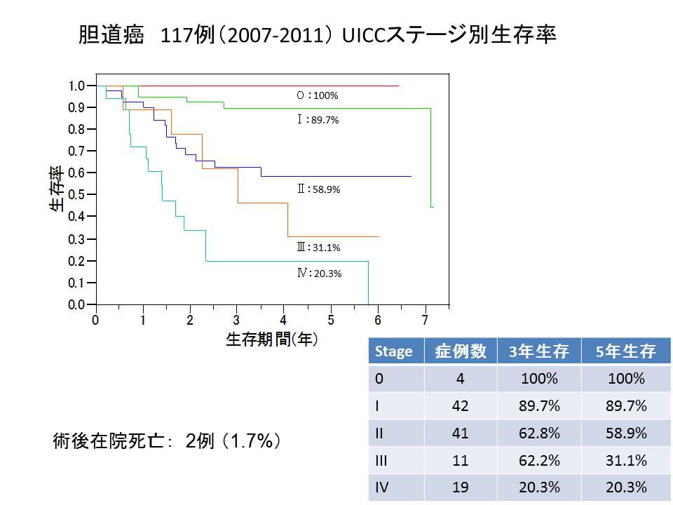 肝胆膵領域がん全体の症例数は胃や大腸に比べ少ないですが、手術は技術的に難しく、現在の本邦においても手術死亡がおこりうる術式が多くあります。したがって症例数が多く、専門医のいる施設での手術をお勧めします。当院外科は、2008年から日本肝胆膵外科学会の県下唯一の高度技能医修練施設Aに認定されています。この分野での経験が数多くあり、豊富な症例数が安全性を担保し,開腹手術だけでなく、低侵襲手術(腹腔鏡手術・ロボット支援下手術)を行うための知識・技術を擁しています。