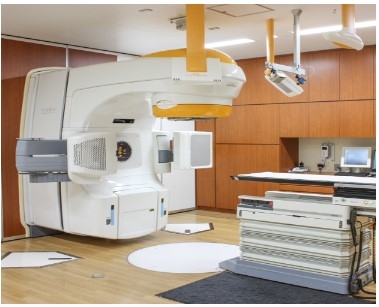 - 放射線治療:2010年から当院に放射線治療を行うNovalisが導入され、限局癌を対象に治療を行っています(図8)。従来の外照射に比べより前立腺により正確に照射出来るようになり、周囲に臓器(直腸や膀胱)などへのダメージが減り、前立腺に十分な線量が照射出来るようになりました。低リスク、中リスク、高リスクの3つに分類し、それぞれ74、76、78Gyの照射に加え、治療効果をさらに高める目的で半年から3年間のホルモン治療を併用しています。年間30~40人の方に治療を行っています。その他に前立腺の中に直接放射性同位元素を埋め込む小線源療法(ブラキセラピー)や、粒子線治療(重粒子線、陽子線)等を希望される方に対しては、施行可能な施設に紹介し、治療の連携を図っています。