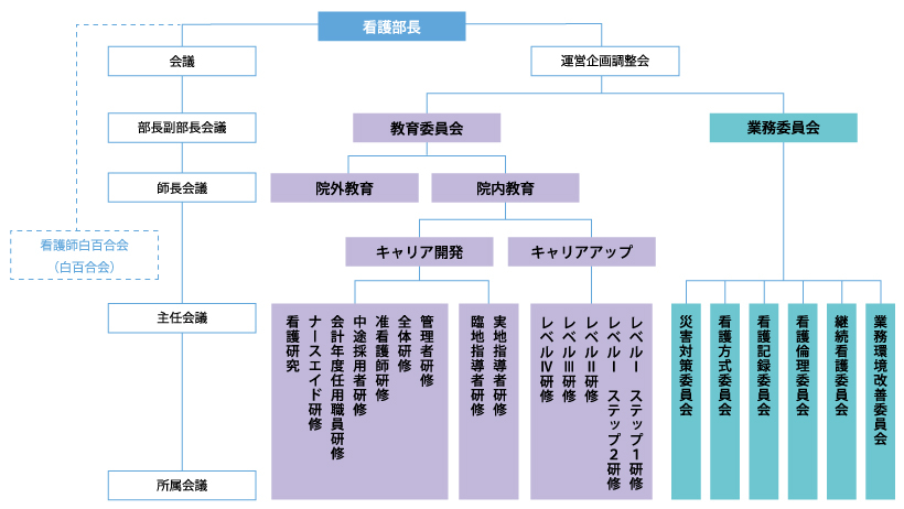 1998年から固定チームナーシングを導入し、2014年からパートナーシップ・ナーシング・システムを導入していましたが、2019年から再び固定チームナーシングになりました。目標を共有するチームメンバーが共同して患者に必要なケアを提供し、質の高い看護を目指しています。