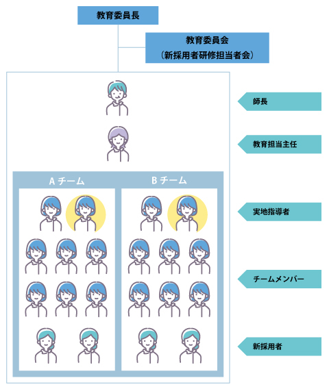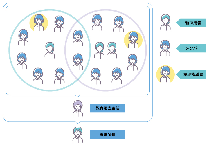 厚生労働省から出された「新人看護職員研修ガイドライン」を基に、チーム支援型の新人看護職員教育を行っています。