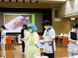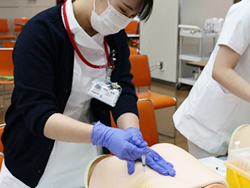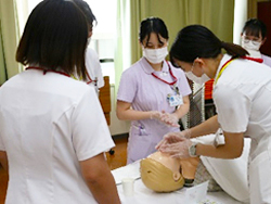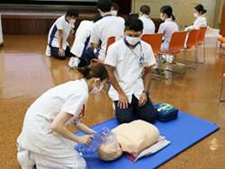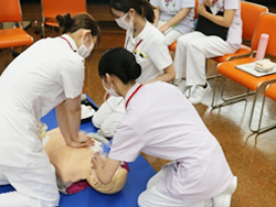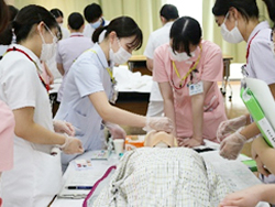 救急認定看護師・院内認定看護師が救急蘇生の演習を行います。