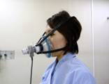 心電図の電極と血圧計の他、顔に呼吸用のマスクを着けて、トレッドミルを使った運動をします。