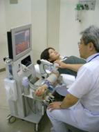 腕の動脈の太さを超音波で調べ、血管の内皮細胞の機能をみる検査です。 動脈硬化の度合を調べます。