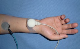 運動神経と感覚神経の伝わる速度を測定します。手、足や顔に電極をつけて電気刺激をして、神経を興奮させて行います。電気刺激は、電気マッサージの強いものだと思ってください。 検査時間30~60分程度(部位や神経の数によって異なります) |