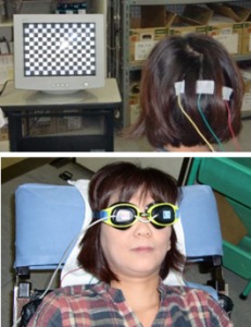 網膜に光を与えた時に網膜や大脳視覚領に生じる反応をいいます。 検査時間60分程度(集中力の違いにより前後します) |