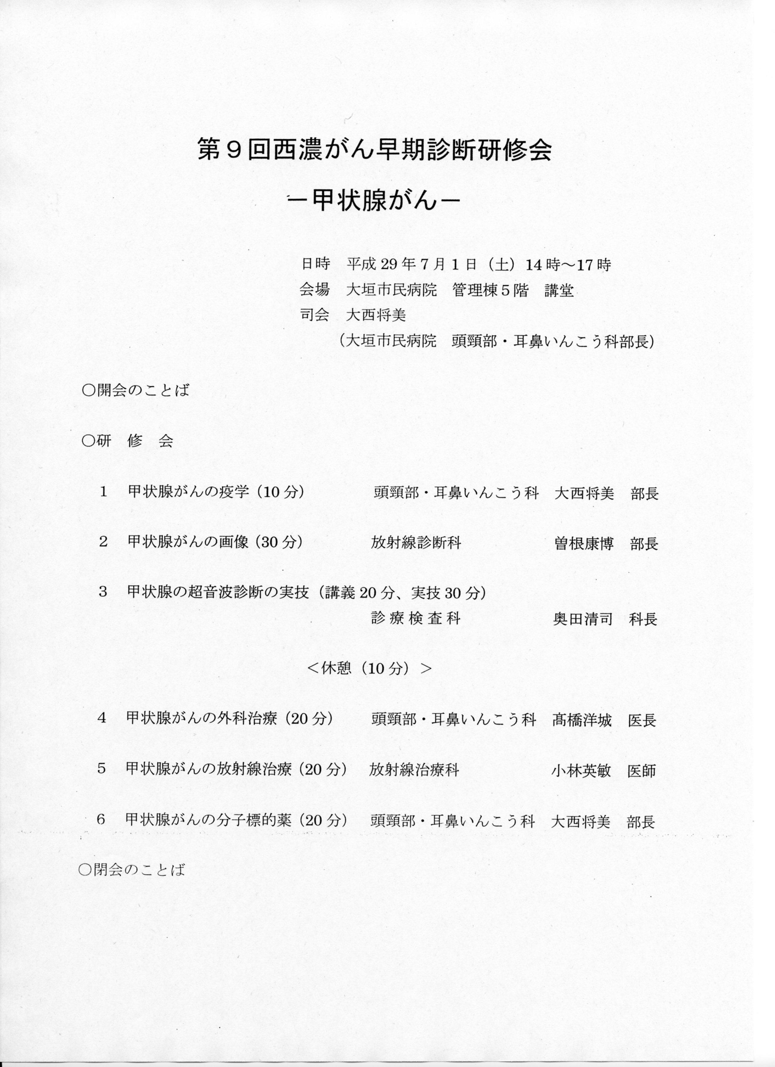 第9回西濃がん早期診断研修会―甲状腺がん―