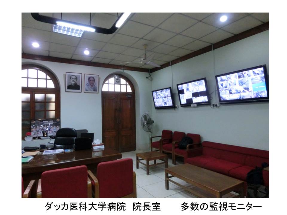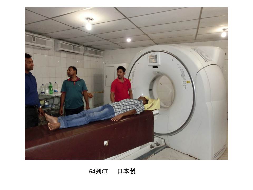 日程時間を調整して、国公立のDhaka Medical Collage(1000床)とBangobondhu Sheikh Mujib Medical University(1500床)の二つの医科大学付属病院(主に超音波室と放射線関連施設)を見学させて頂きました。理事長、病院長、放射線科教授、技師長等に同行を頂き、丁重なる説明を受けました。同国を代表する大規模な2つの大学病院と言え、経済的な理由のためか、疾患構造の違いのためか64列CT(日本製)1台、MRI 1台という状況でした。一方、超音波室は7室(ダッカ医科大学付属病院)あり、待合室は溢れんばかりの患者で、私としては画像診断における超音波診断の利用は予想外でありました。外来や病室はいずれも野戦病院の様な状況で病院事情を聞いたところ、富裕層は設備の整った私立病院へ、貧困層は医療費の安い国公立の病院への受診という二極構造を呈しているようで、そのため国公立病院は極端な混雑が常態化しているそうです。この国の医療環境を知ることができました。紙面に書ききれないことが多く、機会あれば詳細な報告させていただきたいと思います。