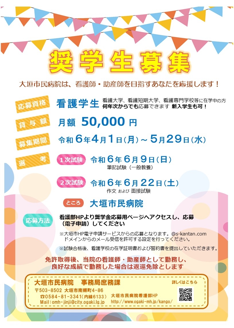 【募集〆切5/29(水)まで】令和6年度大垣市民病院看護師等奨学金の奨学生を募集中!!