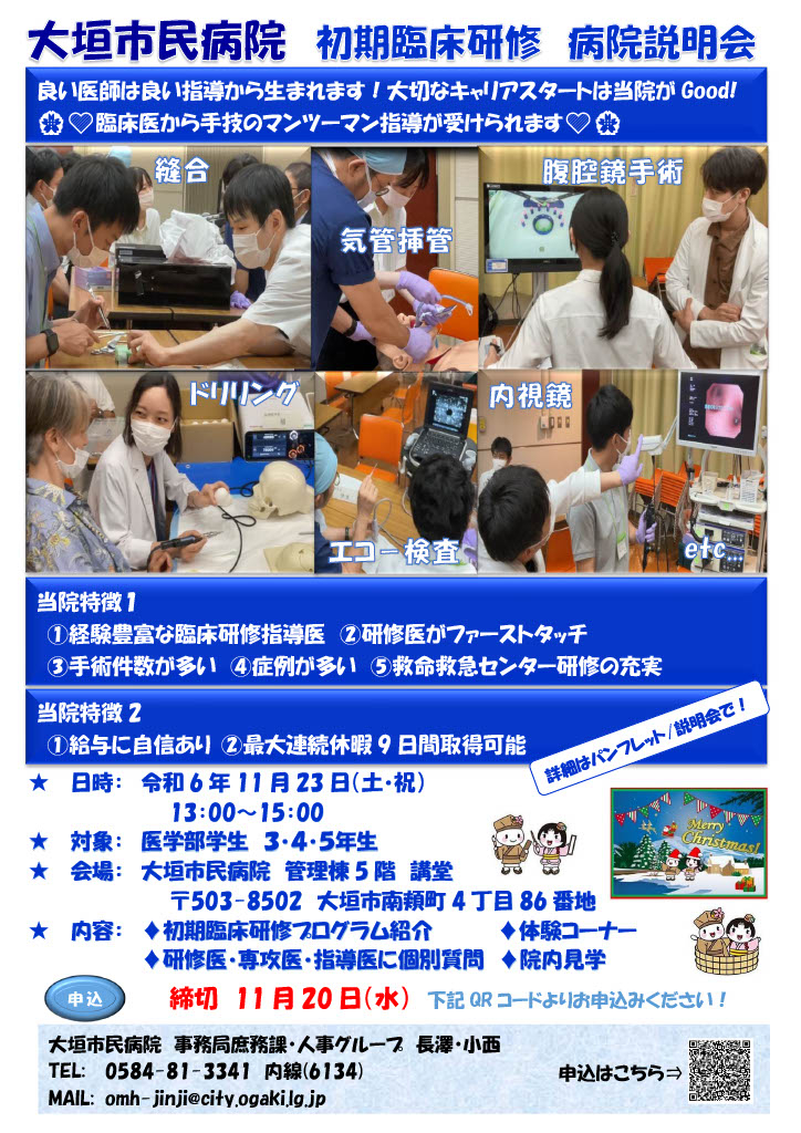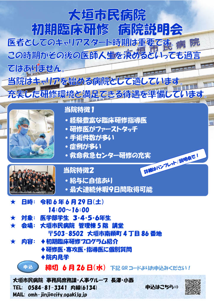 「大垣市民病院初期臨床研修 病院説明会」のお知らせ