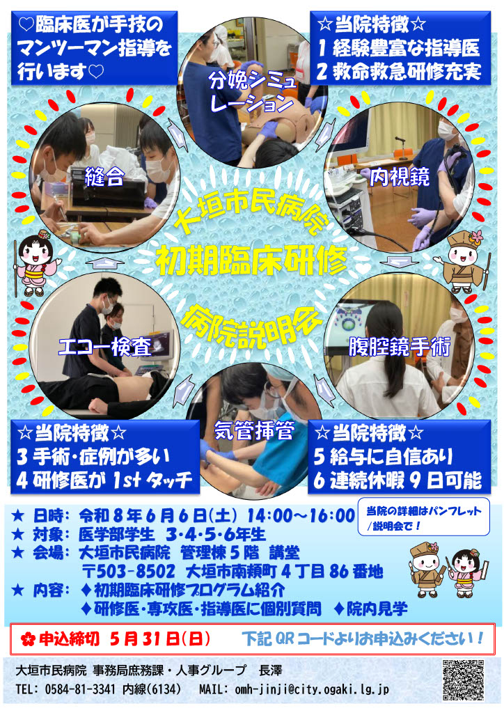 ホーム > お知らせ > 「大垣市民病院初期臨床研修 病院説明会」のお知らせ
