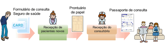 ※Na folha do「Passaporte de Consulta」verá impresso o número de chamada, guia da salas de exames, conteúdo da consulta do dia. Na hora de ir embora, o Passaporte de Consulta deverá ser entregue no Guichê de Cálculo de Custos portanto favor ter zelo.
