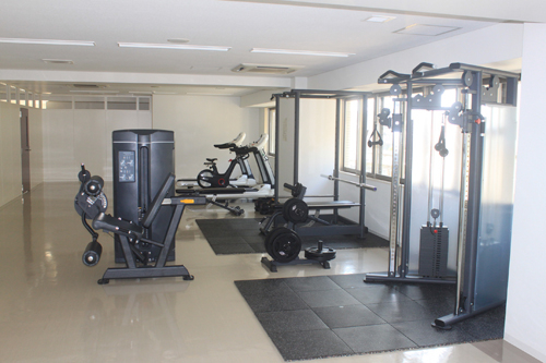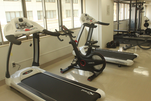 初期研修医、見学の学生、新規採用看護師のためのワンルーム型宿泊施設にアスレチックジム用品を配備して心身ともに日々の生活がエンジョイできるように工夫しています。