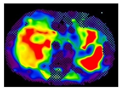 図2:MRIによる(肝硬度)肝臓の硬さ・肝硬変へ進行の程度の測定
