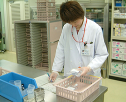 ![]() 薬剤部での注射薬調製の様子 |