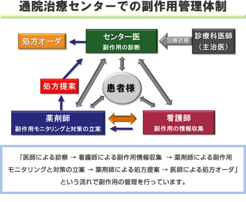 「通院治療センター」は「外来化学療法」を安全かつ適正に管理・治療を行う部署です。