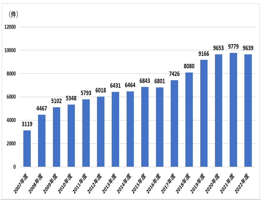 当院の通院治療センターは全国あるいは東海地区でも、その病院診療実績数に比例した、30床という最大級の部門として発足し、10年近くで利用患者数は2.5倍になっています。