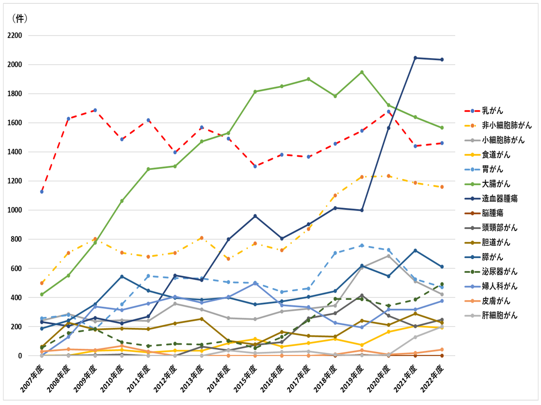 通院治療センターでの化学療法の施行件数