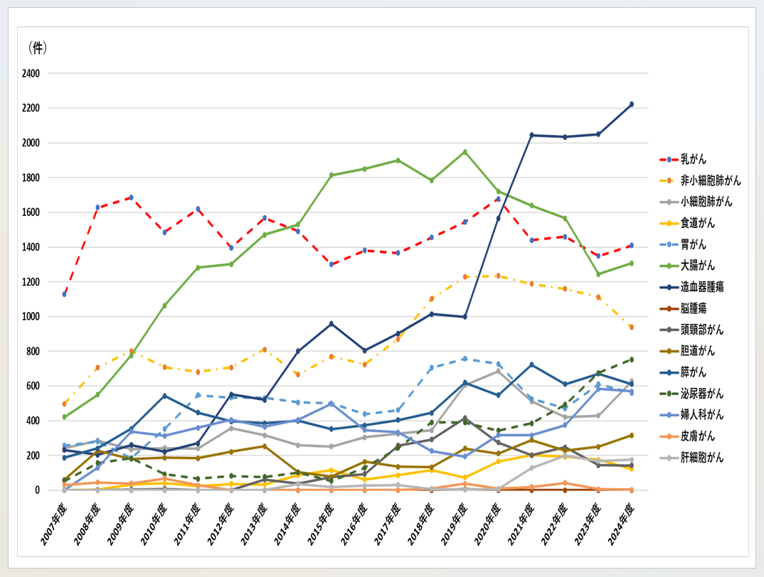 我が国の人口構造の高齢化へのシフトとともに、がん罹患患者数の増加に合わせて、治療需要に応えられる体制を維持し続けています。