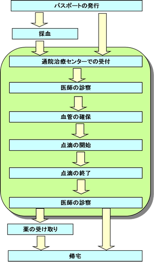 紹介していただくと、あらかじめ通院治療センターの初回診察を受けていただきます。